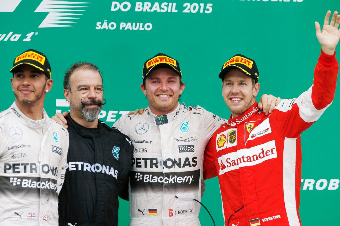 Вимушена реакція Мерседес на дії Феттеля породила внутрішньокомандну дискусію стососвно необхідності третього піт-стопу – Хемілтон, як і в Мексиці, не бажав миритися з тим, що нічого не може вдіяти з напарником і змушений розглядати заднє крило та коробку передач на W06 Ніко. Льюіс намагався переконати команду дати йому можливість розділити тактику, що дозволило б поборотися з Росбергом за перемогу – з огляду ж на те, що ніяких інцидентів наприкінці гонки не сталося, то з таким підходом можна стверджувати, що британець мав 99% шансів на перемогу. В принципі бажання Хемілтона є цілком зрозумілим, і навіть аргументація того, що команда вже має обидва титули в руках, виглядає цілком логічно. От тільки в Мерседес такий підхід не працює – в команді практикують однаковий вибір тактики, якщо мова йде про боротьбу тільки між своїми пілотами (а при всій повазі до Феттеля – в Сан-Паулу він був конкурентом Мерседес перші метрів 350).