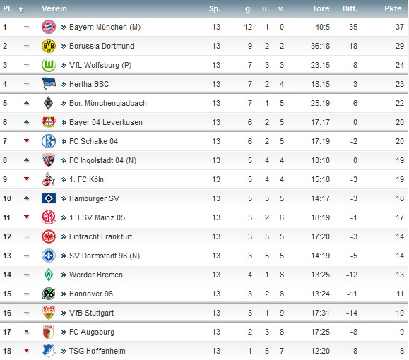 Очередной тур чемпионата Германии фактически убил интригу в борьбе за чемпионство. «Бавария» после победы над «Шальке» смогла оторваться от своего ближайшего преследователя «Боруссии» Дортмунд на 8 очков, и это только после 13-ти сыгранных туров! Кроме того, 40 забитых голов и 5 пропущенных командой Пепа Гвардиолы говорят о том, что пока эту машину не сможет остановить никто. Да и пока не видно, кто бы мог хотя бы приблизиться к тому уровню, который на сегодняшний день показывает «Бавария».