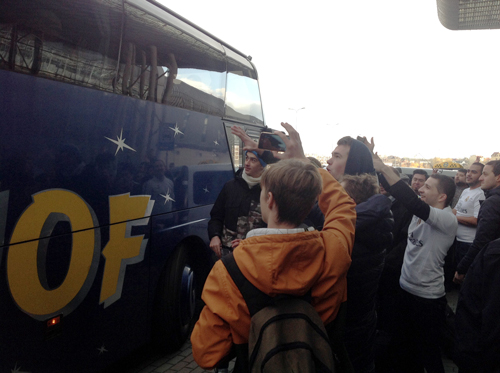 17:05. Болельщики обеих команд перед матчем гуляют по Львову, не забывая делиться своими фотографиями в социальных сетях.