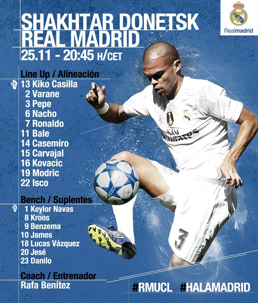 «Реал» Мадрид: Касилья, Варан, Пепе, Начо, Карвахаль, Бейл, Каземиро, Ковачич, Модрич, Иско, Роналду