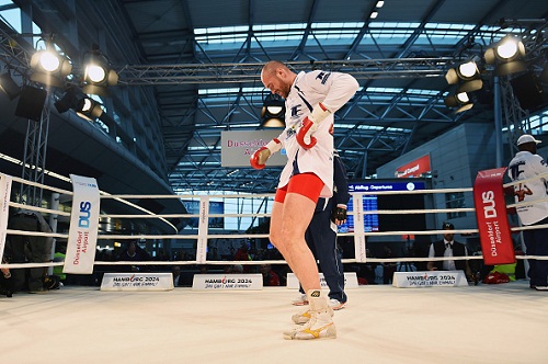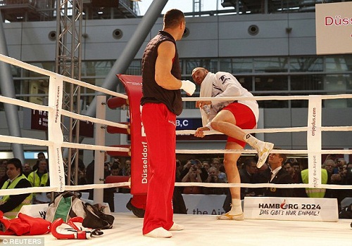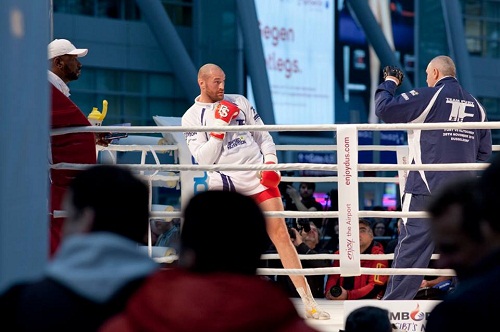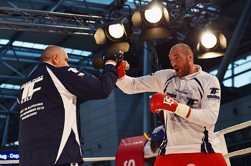 Сегодня в аэропорту Дюссельдорфа состоялась открытая тренировка чемпиона мира в супертяжелом весе по версиям WBA, WBO, IBF, IBO Владимира Кличко и претендента на его титулы Тайсона Фьюри. Вашему вниманию фото и видеоотчет о мероприятии.