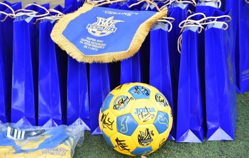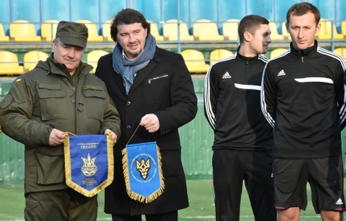 Початку зустрічі передувала урочиста церемонія, у ході якої захисники нашої Вітчизни отримали від представників команди Федерації пам’ятні подарунки. Учасників товариської гри також привітали начальник Служби президента ФФУ Іван Піроженко та заступник командира військової частини Костянтин Рихтік.