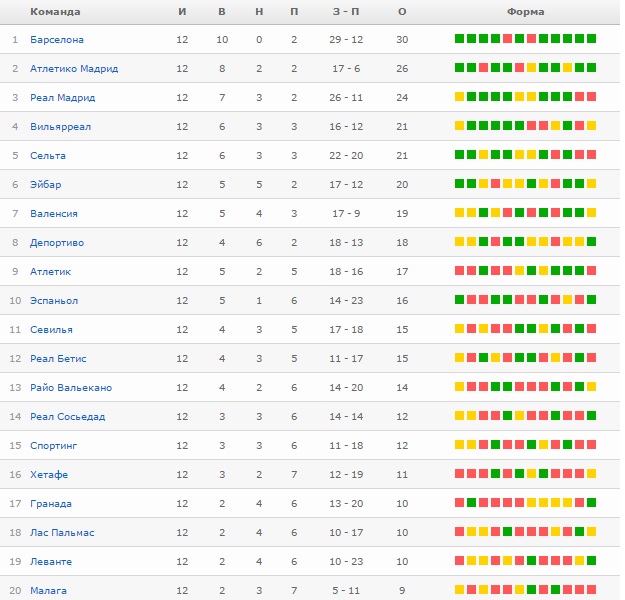 Турнирная таблица: