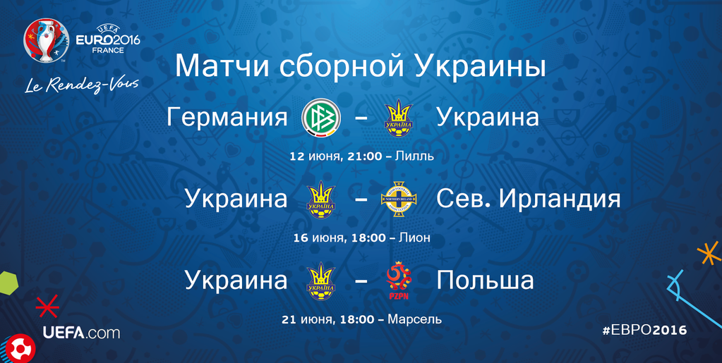 Стал известен календарь матчей с участием сборной Украины на Евро-2016. Команда Фоменко начнет чемпионат Европы матчем против Германии в Лилле 12 июня. Дальше сыграем с Польшей и Северной Ирландией.