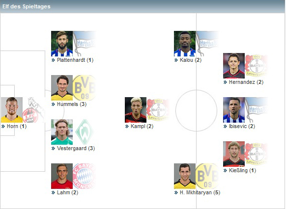 Штефан Кисслинг в этом поединке в 51-й раз в своей карьере вывел свою команду вперед, что стало абсолютным рекордом Бундеслиги по этому показателю. Второй гол форварда «Байера» стал для него 138-м в карьере, что позволило взобраться на 16-ю ступень лучших снайперов чемпионата Германии, сравнявшись тем самым с Марио Гомесом. В тот же момент Чичарито стал первым мексиканцем в истории Бундеслиги, которому удалось отметиться хет-триком. Эта победа помогла «аптекарям» догнать в турнирной таблице Гладбах и подобраться к ним на расстояние двух очков.