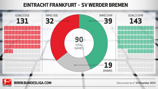 На новые победы «Вердер» должна подтолкнуть победа в Кубке Германии над гладбахской «Боруссией» (4:3), которая имела место быть в прошлую среду. Достаточно неожиданно «музыканты» в гостях смогли переиграть вчерашнего представителя Германии в Лиге чемпионов, сделав это второй раз за текущий сезон. Однако в чемпионате Бремен не знает радости побед четыре матча кряду, набрав в них лишь два очка. Отчетный соперник «Вердера» не побеждает и того больше - 6 игр, в которых может похвастаться лишь ничьей с «Баварией». За последние 12 матчей «Айнтрахт» забил всего 4 гола, 3 из которых были отправлены в ворота соперника после стандартных положений.