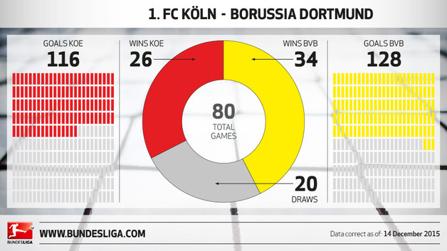 Пять матчей кряду не может выиграть «Кельн» в родных стенах, сведя три матча к ничьим и проиграв дважды - «Ганноверу» и «Аугсбургу». Если «Боруссии» удастся выиграть отчетный матч - это будет второй по успешности старт сезона в их истории. «Боруссия» может также побить собственный рекорд результативности в 50 голов в стартовых 17 турах, который был зафиксирован в сезоне-1963/64, но для этого надо отправить в ворота «Кельна» 5 голов.