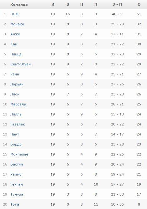 Какими бы сильными или слабыми не были конкуренты у ПСЖ в этом сезоне, парижская команда в первом круге чемпионата Франции так и не ощутила настоящей конкуренции в борьбе за чемпионство. Максимум на что сподобились соперники команды Лорана Блана в 19 матчах, так это трижды отобрать у нее очки, не более. Соответственно, ни о какой интриге говорить не приходиться, к сожалению. Особенно, если вспоминать прошлый сезон, в течение которого сразу несколько команд находились на вершине турнирной таблицы.