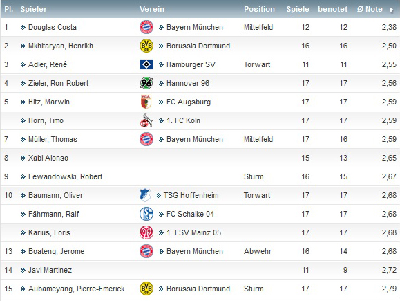 Напомним, что 17-й тур сезона 2015/16 стал последним в чемпионате Германии в этом году, а значит время проводить промежуточные итоги. Главный и самый приятный итог для нас, это показанная в первой части сезона игра экс-горняками Дугласом Костой и Генрихом Мхитаряном, которые по оценкам авторитетного издание Kicker стали лучшими футболистами Бундеслиги! Причем им удалось оставить далеко за спиной своих главных конкурентов - Томаса Мюллера, Роберта Левандовски и Пьера-Эмерика Обамеянга. Уже сейчас Косту и Мхитаряна можно без преувеличения назвать ведущими игроками Европы, которые способны выступать на самом высоком уровне и завоевывать самые престижные награды!