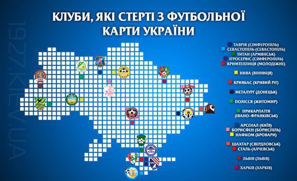 При попустительстве футбольных властей в 2015-м году украинский футбол потерял недавнего участника еврокубков и неоднократного призера чемпионата - донецкий «Металлург». Всего же за историю независимой Украины с футбольной карты исчезло 17 профессиональных клубов, и это далеко не предел.