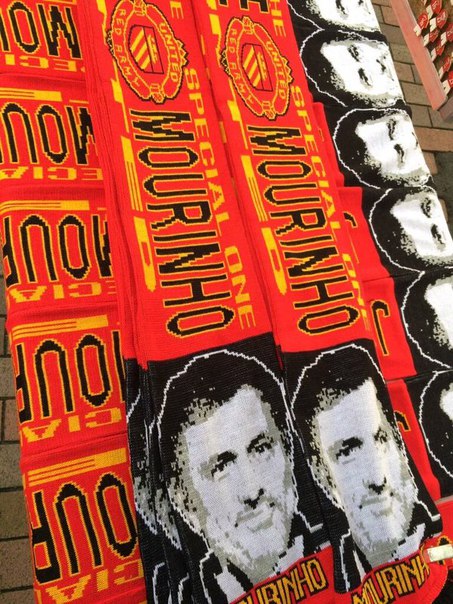 Перед игрой МЮ продают шарфы с изображением Моуриньо
