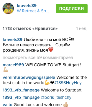 В Инстаграме фанаты Штутгарта приветствуют Кравца