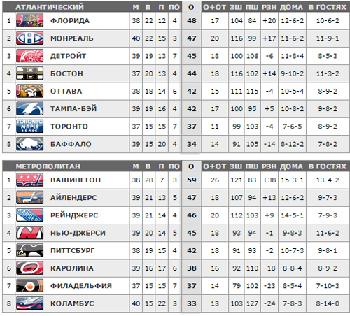 3:4 Детройт - Томаш Татар - 12 (Майк Грин - 13, Павел Дацюк - 10), 17:10