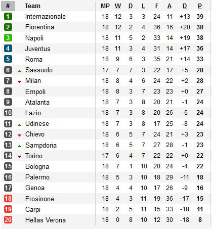 Туринский «Ювентус» в конце 2015 года, наконец, набрал чемпионский ход, и в последних семи матчах Серии А, начиная с туринского дерби, «старая синьора» неизменно выигрывала. Эти успехи позволили команде вернуться в чемпионскую гонку в чемпионате Италии, хотя многие предрекали «Юве», когда команда Аллегри долгое время прозябала среди аутсайдеров, максимум борьбу за зону Лиги чемпионов. Но лидеры Серии А не блещут, и сложилась такая ситуация, что даже после этого тура «Ювентус» мог бы выйти на первое место.