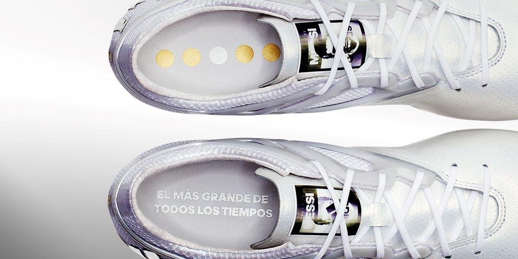 В основе дизайна новых бутс лежит конструкция модели Messi 15. На верх из премиальной перламутровой аргентинской кожи нанесены логотипы Месси и adidas, выполненные из настоящей платины. В области пятки новых Messi15 размещены четыре золотые и одна платиновая точки, напоминающие о главных спортивных трофеях аргентинца – «Золотых мячах». Надпись на стельке “el más grande de todos los tiempos” переводится как «лучший в истории».