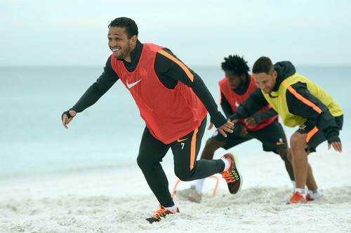 В программе занятий сегодня снова доминировала работа с мячом, чередовавшаяся с бегом и аэробной работой на песке.