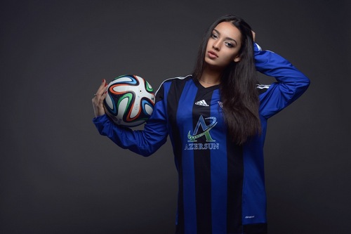 Обладательница шести номинаций «Мисс Азербайджан-2015» Нигяр Ибрагимова приняла участие в фотосессии в стиле «Fan-Girl». Модель предстала в образе фанатки азербайджанского футбольного клуба «Карабах».