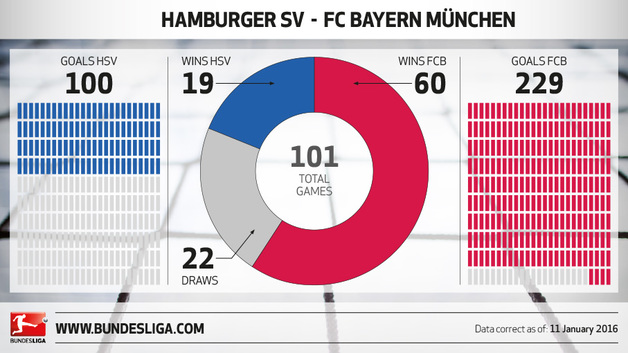 В первом круге «Бавария» камня на камне не оставила от команды Лаббадии, разбив соперника на своем поле со счетом 5:0, а в той игре дебютным голом в чемпионате за мюнхенцев отметился экс-горняк Дуглас Коста, став героем поединка. «Бавария» за первую часть чемпионата набрала 46 очков, что стало вторым результатом в клубной истории после 47-ми очков в сезоне 2013/14. 12 матчей кряду мюнхенцы не проигрывают «красноштанникам», выиграв 9 из этих противостояний. Роберт Левандовски и Томас Мюллер в текущем сезоне на двоих забили 29 голов, что на 10 больше, чем вся команда «Гамбурга». В первой части сезона команда Лаббадии выиграла всего 2 из 8-ми домашних матча.