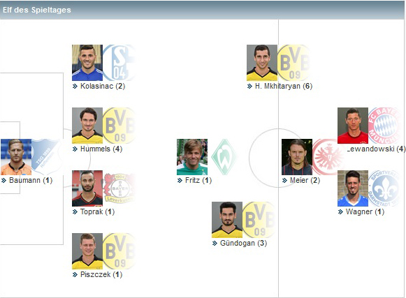 «Боруссия» Д: Бюрки — Хо, Хуммельс, Сократис, Пищек — Кастро (Дурм, 70), Вайгль, Гюндоган — Ройс (Гинтер, 70), Обамеянг (Рамос, 75), Мхитарян.