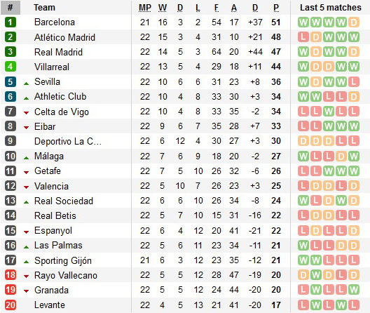 За счет поражения «Атлетико», «сливочные» подобрались к «кольчонерос» максимально близко – только один зачетный пункт разделяет мадридские команды в турнирной таблице. Может, подопечным Зидана удастся обогнать и «Барселону»?..