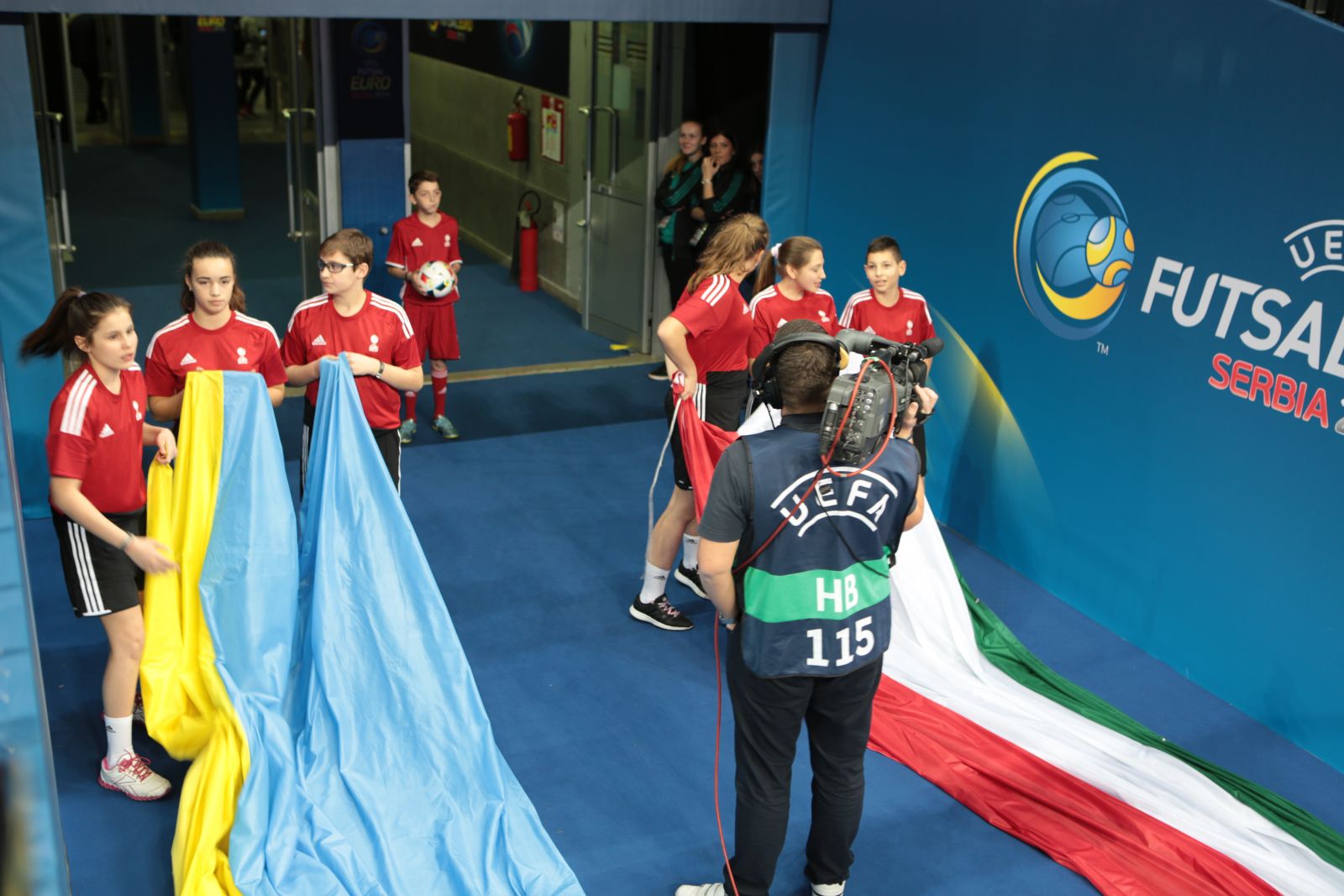 4 февраля сборная Украины по футзалу с победы над комндой Венгрии стартовала на чемпионате Европы по футзалу. Перед болельщиками, которые смотрят матч по ТВ, предстает непосредственно сама игра. В данной же фотоподборке предлагаем вам окунуться в атмосферу того, что происходило в «Комбанк Арене» в последние 20 минут до стартового свистка – это то, что остается вне поля зрения. Автору этих фото определенные моменты показались интересными, и надеемся, они дополнят те позитивные эмоции, которые мы все пережили в этом важном матче.