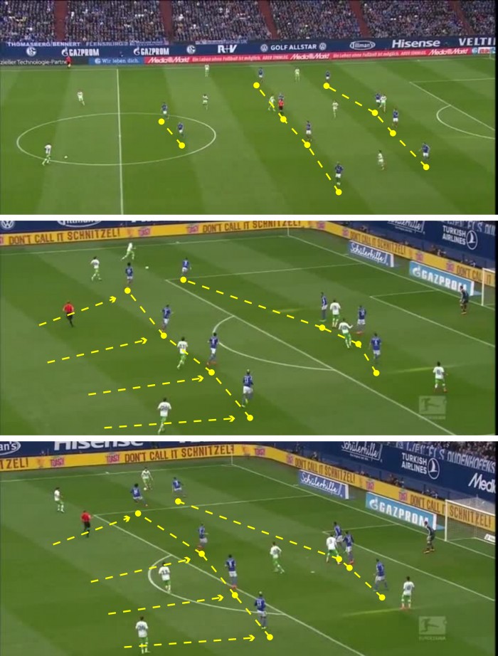 Нападающие «Вердера» и «Вольфсбурга» без труда пронизывают оборонный порядок «Шальке» 4-4-2 в защите. На их месте без труда можно представить бразильцев «Шахтера».