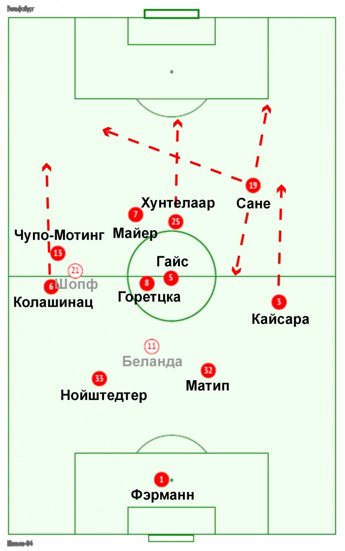 Из-за активности Сане и Кайсара на правом фланге «Шальке» несколько чаще и результативнее атакует через эту зону.