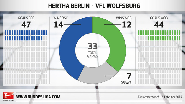 В прошлом сезоне «Вольфсбург» набрал почти в два раза больше очков, чем это сделала «Герта» (69 против 35-ти), а в нынешнем команда Дитера Хекинга с 30-ю баллами отстает от столичного клуба после 21-го тура на 5 пунктов, давно выбыв из гонки за лидирующие позиции. В нынешнем сезоне «Герта» сверхудачно выступает в родных стенах, проиграв на «Олимпиаштадионе» лишь однажды (гладбахской «Боруссии»), чего нельзя сказать о выступлении «волков» на выезде - 6 поражений в 10-ти матчах. В последних двух играх этих соперников победу добывал «Вольфсбург» (2:1 и 2:0), а все четыре гола в ворота «старой дамы» на свой счет записал Баст Дост.