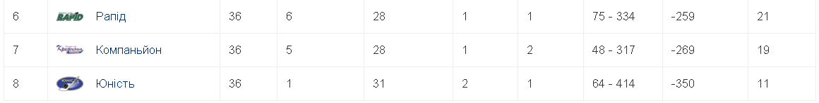 Именно «Рапид» и «Компаньон» поборются между собой за шестую итоговую строчку в чемпионате Украины. В предыдущем туре «Рапид» одержал победу в очном противостоянии и теперь опережает своего соперника на два пункта. Здесь борьба также впереди, вполне возможно, что все решится в матчах этих команд против «Юности» и «Белого Барса».