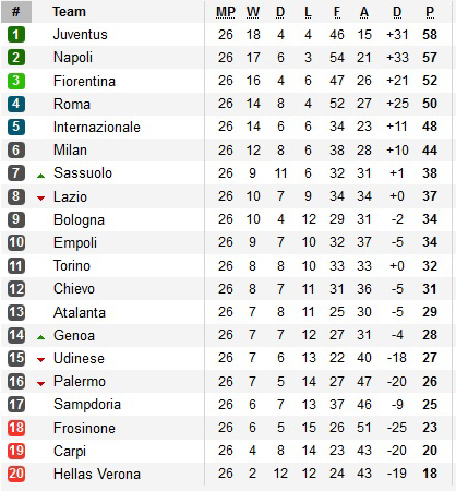 Предупреждения: Гастальделло, Диавара — Стураро, Маркизио.