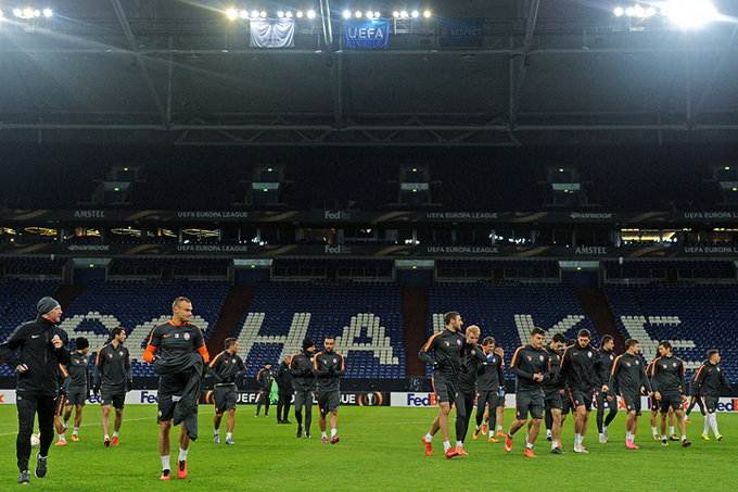 11:17. Вчера вечером донецкая команда провела тренировку на «Арене АуфШальке»: