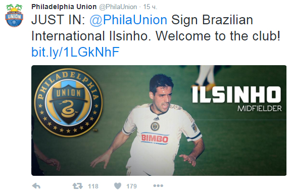 13:15. Тем временем стало известно, что бывший хавбек «Шахтера», 30-летний бразилец Илсиньо, официально подписал контракт с американской «Филадельфией Юнион»: