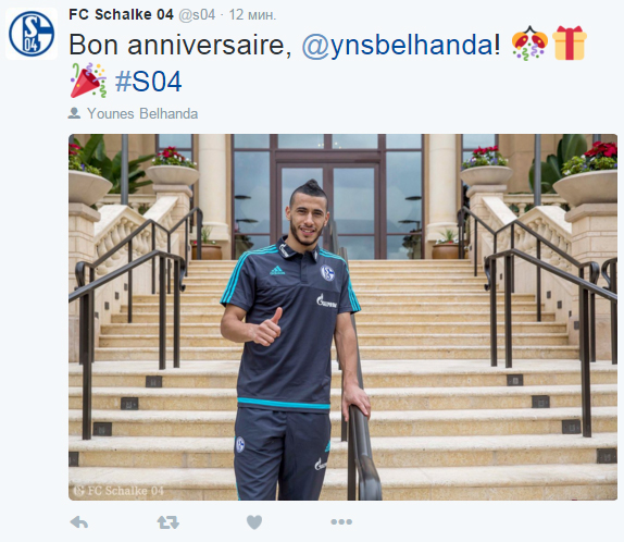 13:47. Полузащитник «Шальке» Юнес Беланда сегодня празднует День рождения - ему стукнуло 26. Клуб поздравил марокканца: