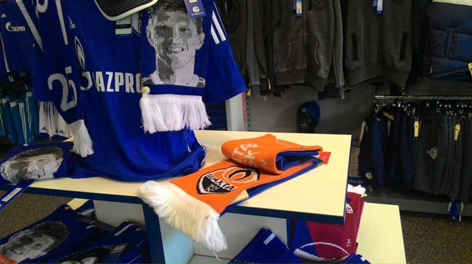 16:16. Матчевая атрибутика в фан-шопе «Шальке»: