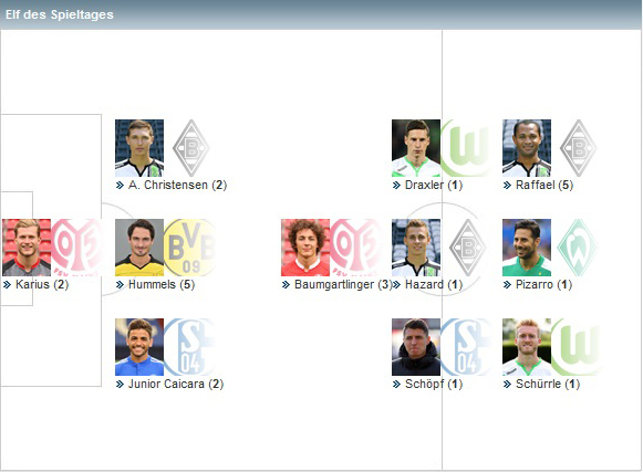 «Майнц»: Кариус — Балогун, Бунгерт (Латца, 46), Хак — Донати (Бросински, 73), Баумгартингер, Ф. Фрай, Буссманн — К. Клеменс, Малли (Х. Кордоба, 60), Самперио.