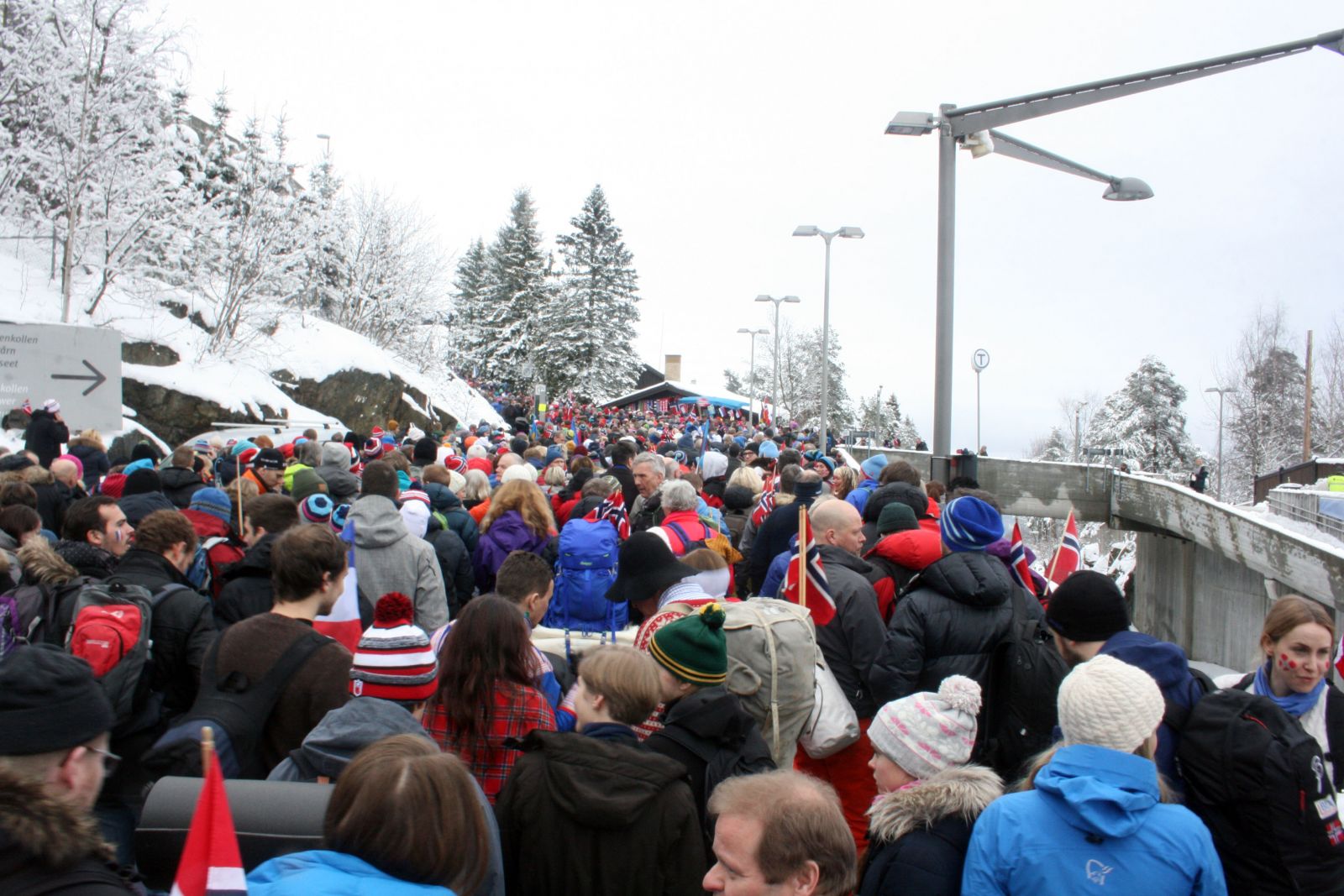 При прибытии в Холменколлен за два часа до первой гонки примерно час ушел на то, чтобы попасть на арену – поток людей был нескончаемым!