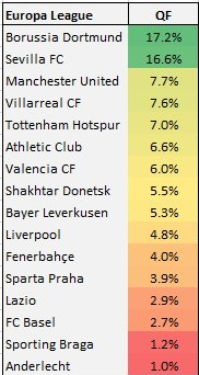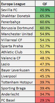 17:50. А вот такой индекс от Евроклуб Индекса. Шансы команд на выход в 1/4 финала ЛЕ: