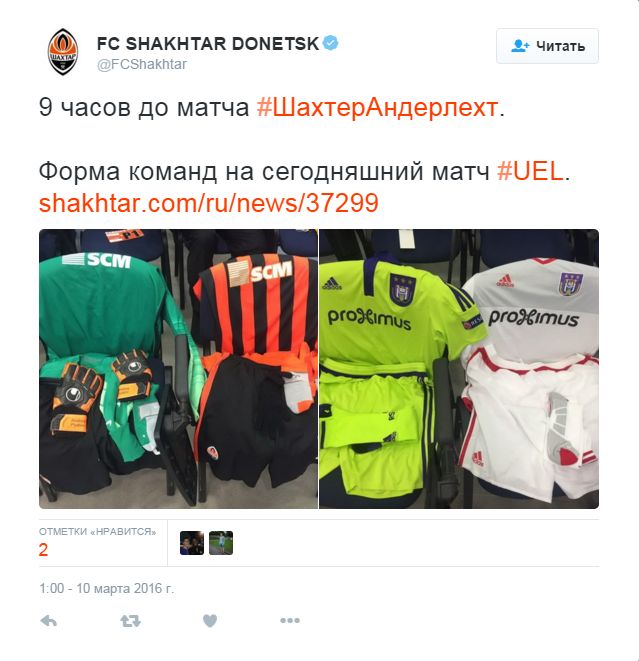 — FC SHAKHTAR DONETSK (@FCShakhtar) 10 Март 2016