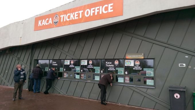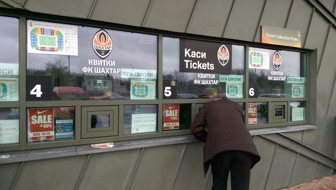 18:23. Народ все еще стремится попасть на футбол. Хотя очереди «жиденькие», как передают изо Львова наши корреспонденты. Зато в кассах можно приобрести билеты и на ответный матч! Цена - 1200 грн, кассы будут работать и завтра. Что удивляет - абсолютно не видно бельгийских фанов. Народ подтягивается. У касс есть предложение - получить на щеку «картинку» в цветах донецкого клуба либо же просто сине-желтый флажок. Впрочем, «флагонаносители» не пользуются особым спросом, хотя цена их труда - всего-то 10 грн.