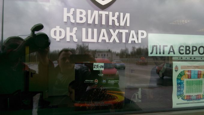 15:35. «Во Львове нынче шахматный бум – поиграть в эту игру можно прямо на улице. Рядом девушки продают матчевые «розы» «Шахтер» - «Андерлехт». Цена такая же, как и на стадионе – 149 гривен», - сообщает Александр Симонов.