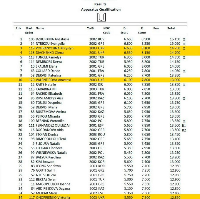 Алена Дьяченко хорошо выполнила упражнение со скакалкой, показав 4 результат с этим предметом, но, к сожалению, допустила ошибки в упражнении с обручем. После двух видов Алена Дьяченко идет по многоборью на 7 месте.