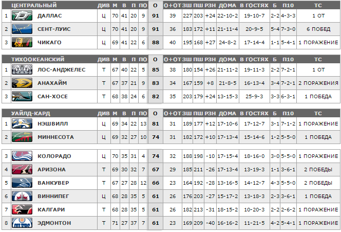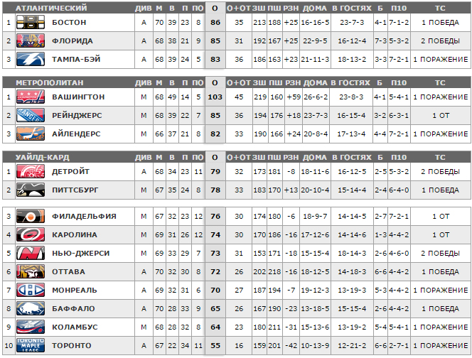 3:2 Детройт - Даррен Хелм - 10 (Павел Дацюк - 25, Дэнни Декайзер - 12), 03:03