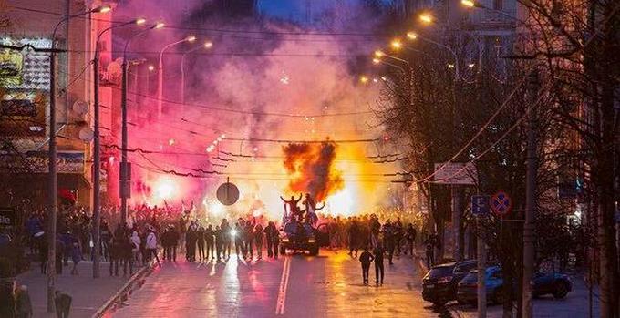 Фанаты Днепра и Шахтера прошли маршем по Днепропетровску