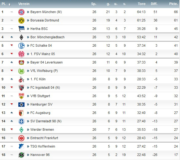 Чем меньше туров остается до конца чемпионата Германии, тем больше интересных матчей мы наблюдаем в уик-энд. В 26-м туре немецкой Бундеслиги нас ожидал целый ряд захватывающих поединков. На этот раз повеселила «Бавария», которая два тура кряду не знала радости побед в чемпионате, наконец прервал свою безвыигрышную серию из 4-х матчей «Байер», хотя сделал это руками «Гамбурга». Вновь допустил ошибку «Вольфсбург», а «Штутгарт» нашего Артема Кравца не смог одолеть скромный «Ингольштадт», хотя и совершил мини-камбэк, отыграв два мяча за 11 минут до окончания матча. Надо также отметить, что в голах своей команды поучаствовали и Кравец с Борисом Тащи, которые появились на поле на 65-й и 74-й минутах соответственно, и именно их удачные действия помогли «швабам» добыть одно очко на выезде.