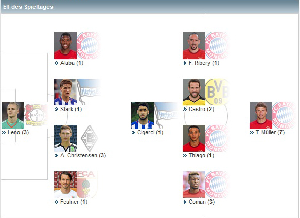 В последних 50-ти матчах чемпионата Германии, в которых забитым голом отличался Томас Мюллер, «Бавария» обязательно побеждала. Тьяго Алькантара забил свой первый гол за последние 31 матч. В последний раз испанец отличался в воротах «Ганновера» в феврале 2014-го года, а на тот раз смог отправить в ворота «Вердера» целых два гола.