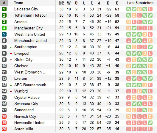 Впрочем, «Ньюкасл» хоть и уступил, но вполне мог свести встречу к ничьей. «Лисы» в этом поединке не были идеальны, а сценарий матча с «Вест Бромом» вполне мог повториться и в отчетной игре. Но где-то везение, а где-то и мастерство ключевых игроков были на стороне команды Клаудио Раньери, которая сыграла на ноль 11-ю игру в сезоне. Победу «Лестеру» принес Синдзи Окадзаки, забивший потрясающий гол «ножницами». Таким образом, «лисы» сохранили 5-очковый отрыв от «Тоттенхэма» и увеличили до 12 очков преимущества над «Ман Сити».