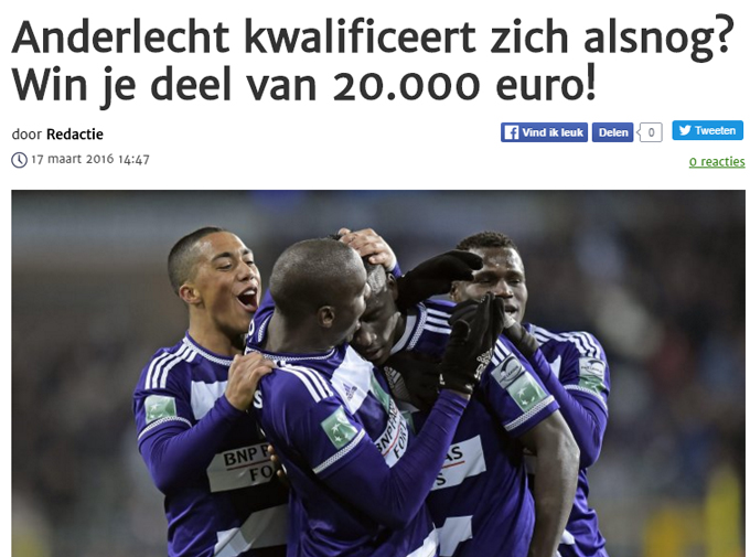 19:44. Пару дней назад каждый болельщик «Андерлехта» мог попытаться выиграть билет на игру любимой команды. Нужно было всего лишь за минуту как можно больше «отчеканить» мяч. Победителю конкурса пришлось 152 раза коснуться кожаного шара: