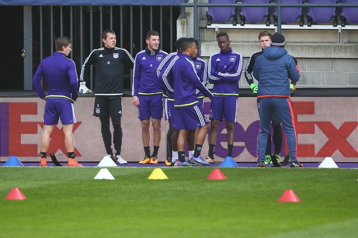 15:45. Перед «Шахтером» поле стадиона «Констант Ванден Сток» опробовали игроки «Андерлехта».