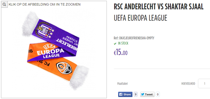 19:31. Матчевый шарфик можно приобрести за 15 евро как на официальном сайте «Андерлехта», так и в клубном фан-шопе: