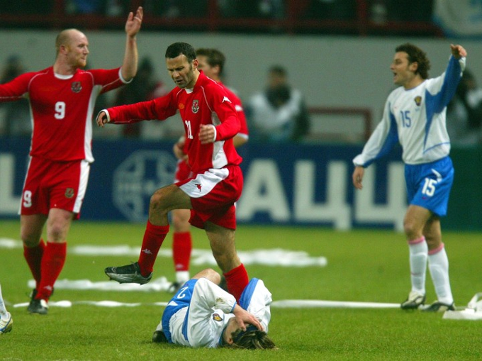 Второй — конфликт между Вадимом Евсеевым и Райаном Гиггзом. Россиянин тогда совершил жесткий подкат в ноги главной звезды сборной Уэльса, а тот, в свою очередь, ударил Евсеева в ухо. Во время игры арбитр не обратил на этот эпизод внимания, но инцидент вызвал большой резонанс после матча, и спустя некоторое время Гиггза дисквалифицировали на два матча сборной.